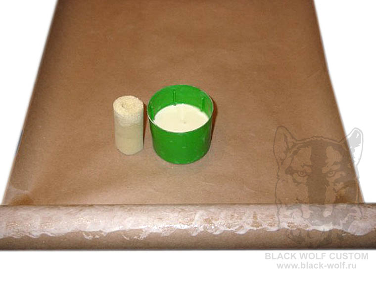 Берем оправку, максимально плотно наматываем на нее в 1-1,5 оборота бумагу, контролируем правильность намотки по ровному «заводскому» краю. После того как убедились, что дальнейшая намотка пойдет прямо, начинаем склейку. Можно зафиксировать «правильное» положения хорошим канцелярским клеем. Эта операция не обязательна. Клеем ПВА столярный мажем тампоном на ту поверхность бумаги, которая находится на оправке (фото 5).