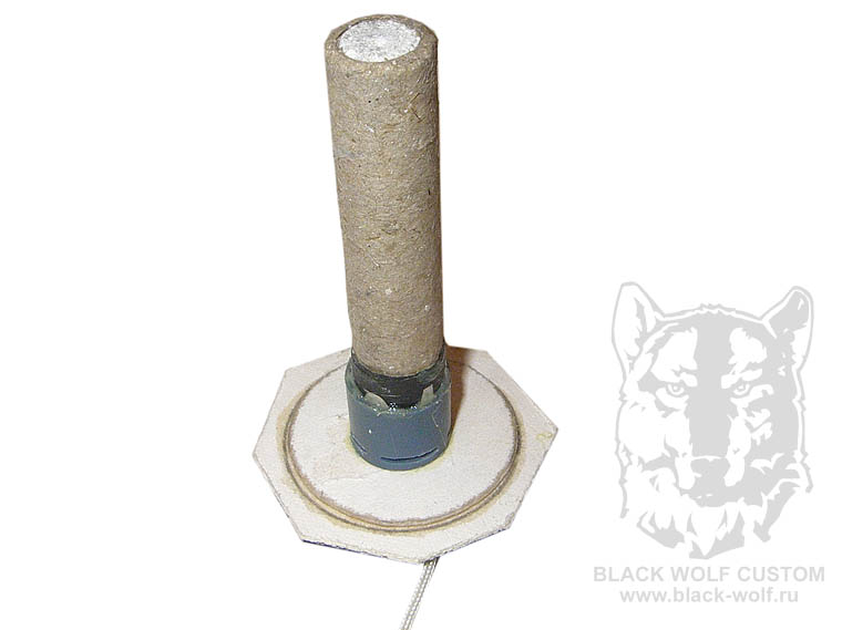 Берем нашу «петарду» и приклеиваем к дну таким образом, чтобы конец стопина вошел в отверстие запальной камеры (фото 19)... прям камасутра какая то (прим. автора). На нижней части необходимо просверлить 6-8 отверстий-газоходов диаметром 2-3 мм. Готово.