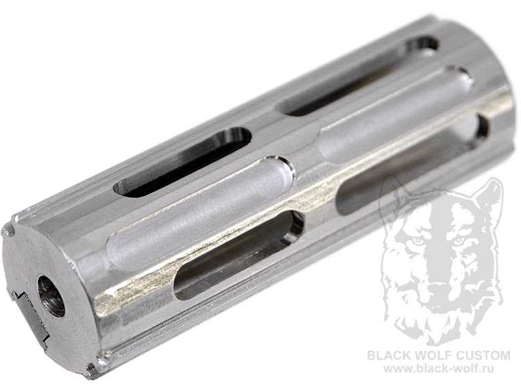 И вот когда поломав подряд несколько дипфаеровских тел поршня всего то на 150 пружине, как раз при настройке испытуемого бокса (Алюминиевый GearBox V2 под торговой маркой B&C Airsoft) решился таки воплотить мысль в материальную составляющую в виде дюралевого тела поршня под дипфаеровскую гребенку. В итоге получился дюралевый (Д16Т) поршень с металлической гребенкой весом 24 гр. Для большей жесткости проблемной части, где перемычка в конце поршня, была внесена небольшая модификация благодаря которой толщина перемычки увеличилась. Ко всему прочему по всей длине гребенки присутствуют полноценные пазы которые в отличии от пластика должны держать большие ударные нагрузки на продавливаемость. Данный поршень установлен в тестируемом боксе, как тестируемый образец борющийся на право жить в жесткой действительности аэрсофт тюнинга...